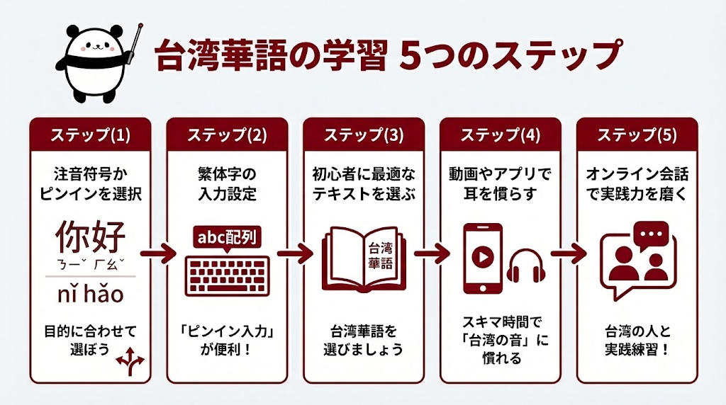 ここでは、初心者が迷わず最短ルートで習得するための具体的な5つのステップを解説します